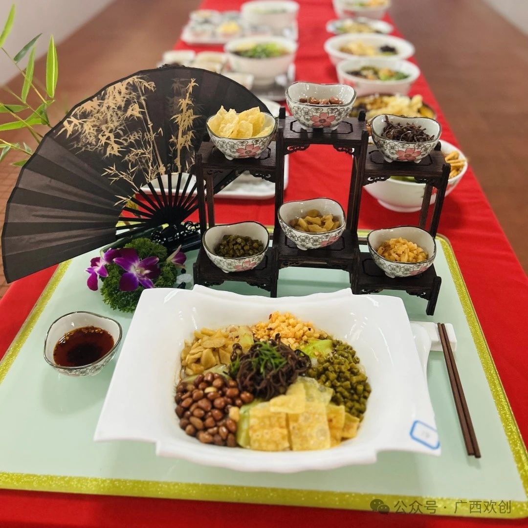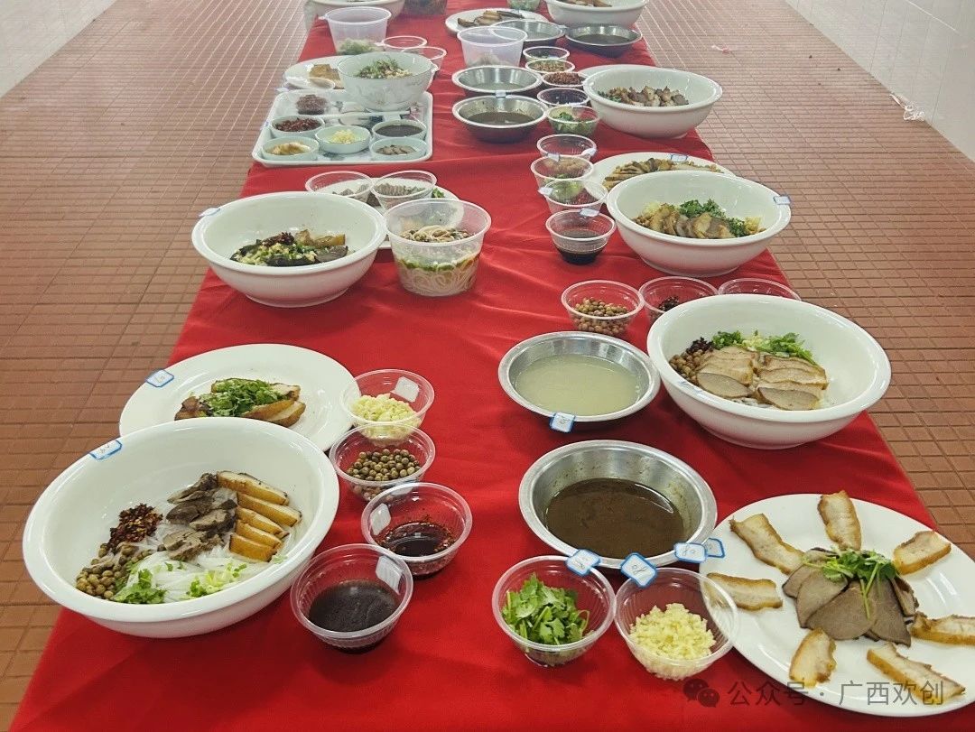 在桂林米粉制作的赛场上,选手们运用炒、炸、卤、煮等烹调技法,动作一气呵成,手法娴熟地将米粉投入沸腾的锅中。空气中弥漫着浓郁的卤水香气,引人垂涎。